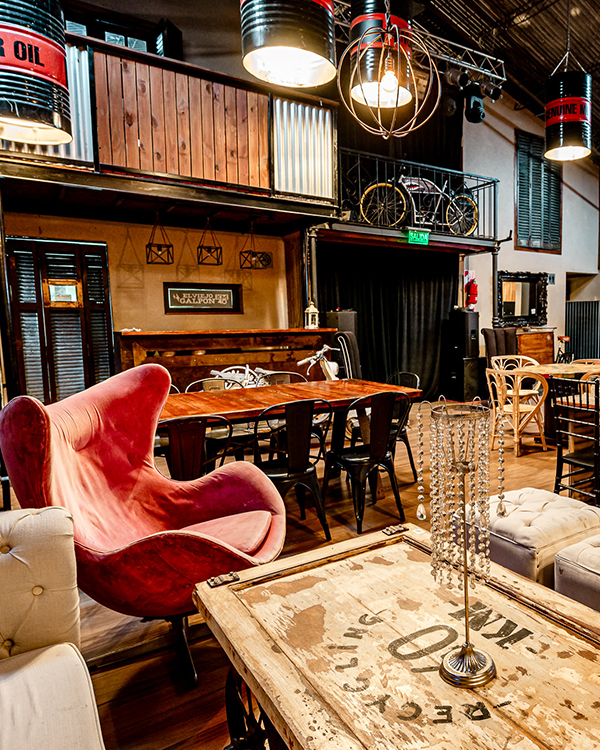 este galpón de más de 60 años, lo transformamos en un espacio mágico. Allí mostramos a nuestros clientes lo que pueden lograr en sus eventos, ofreciendo diseño y ambientación con propuestas gastronómicas tanto de día como de noche.